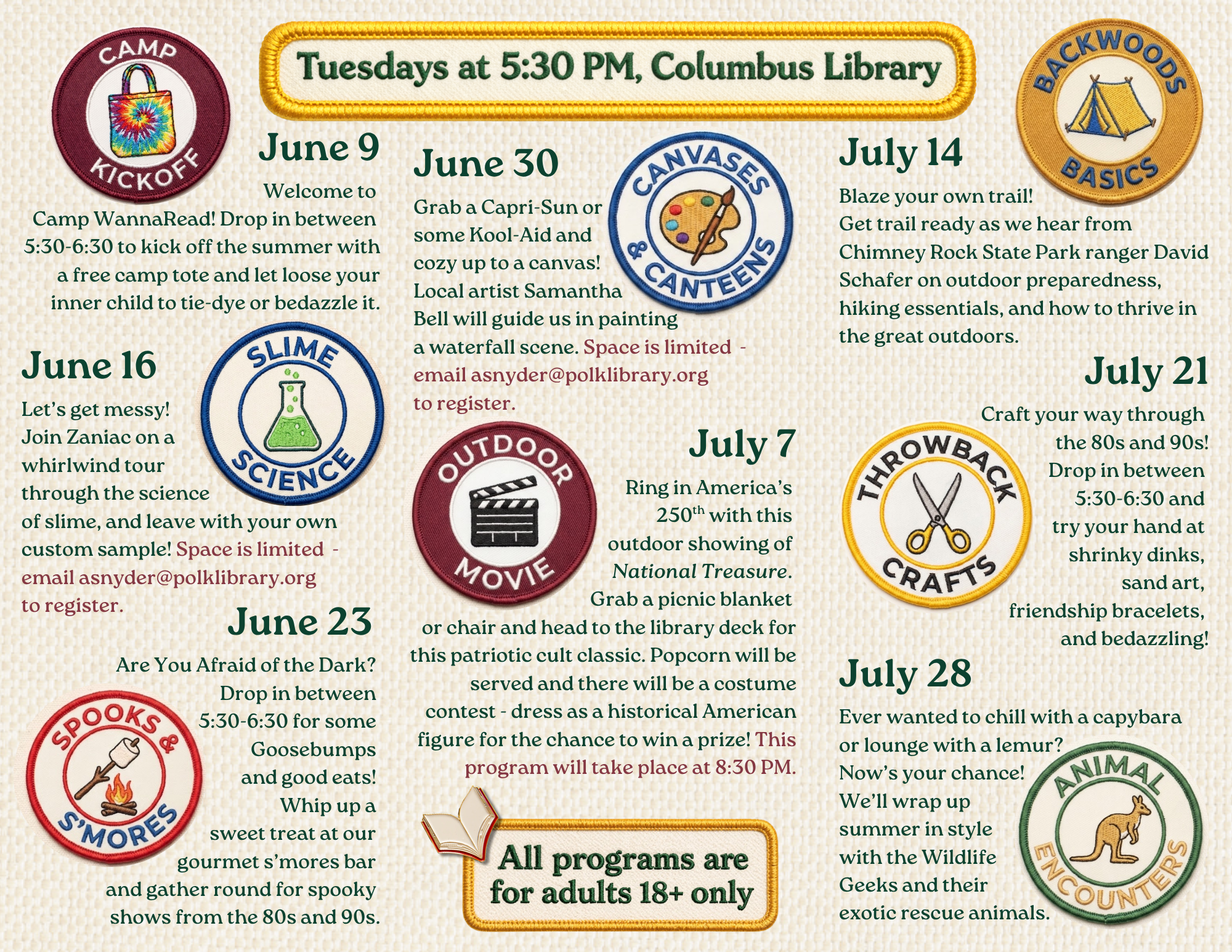 All programs are for adults ages 18+ only!
