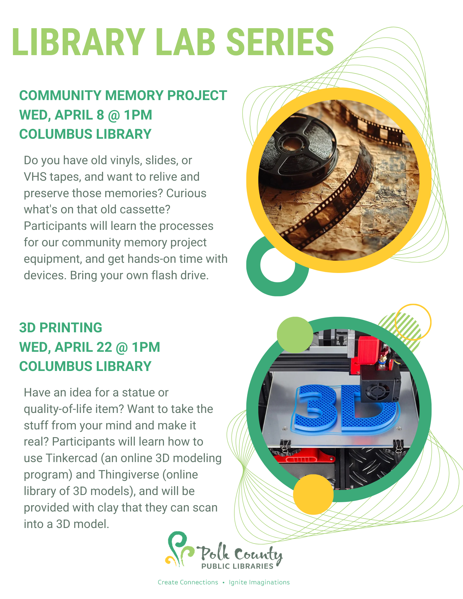 Library Lab: Community Memory Project 04/08/2026 , 1:00 PM at PCPL Columbus Library Lab: Community Memory Project Do you have old vinyls, slides, or VHS tapes, and want to relive and preserve those memories? Curious what’s on that old cassette? Participants will learn the processes for our community memory project equipment, and get hands-on time with devices. Bring your own flash drive.