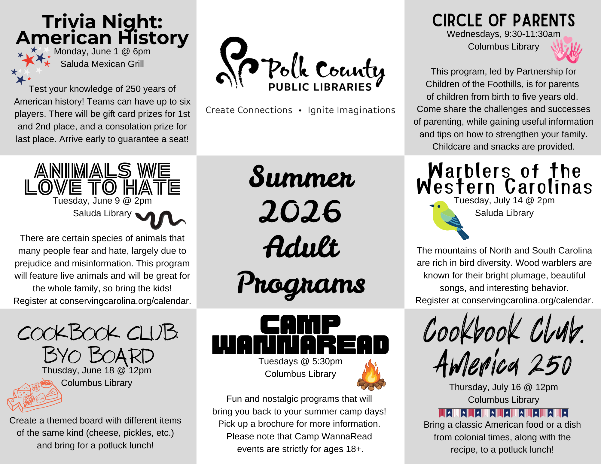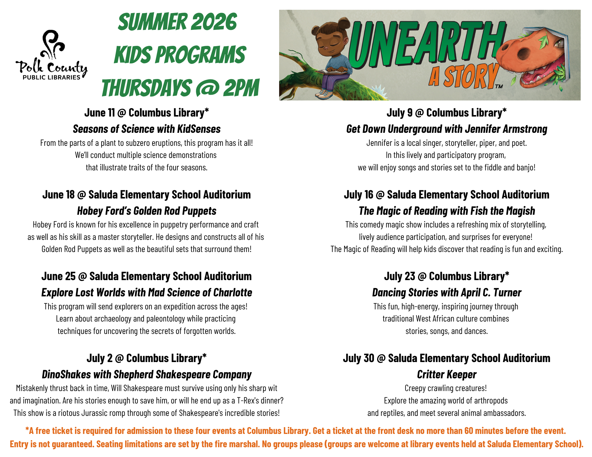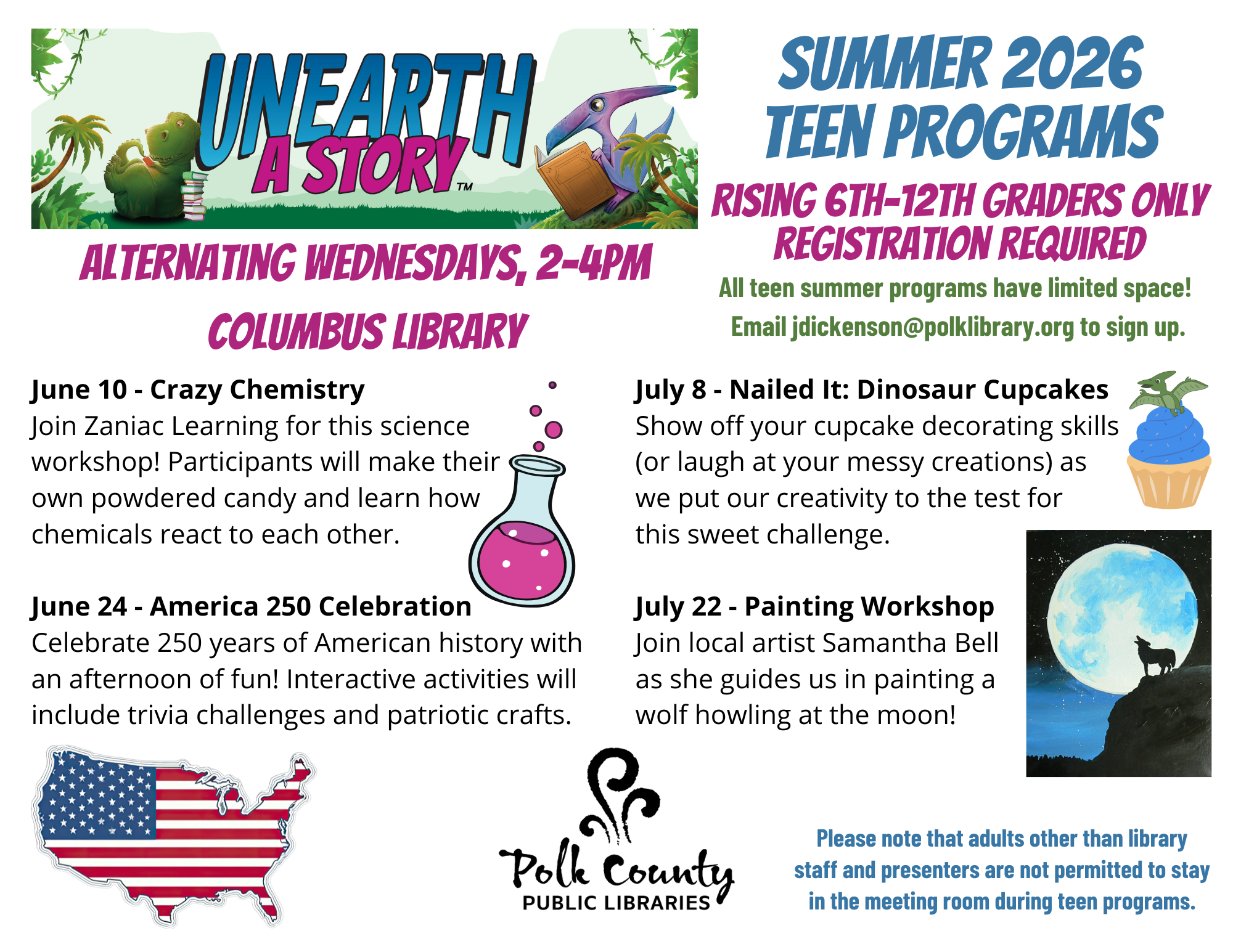 Summer Learning 2026 runs from June 8-August 2! See more info about our kids, teen, and adult programs below.